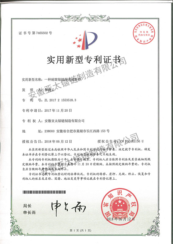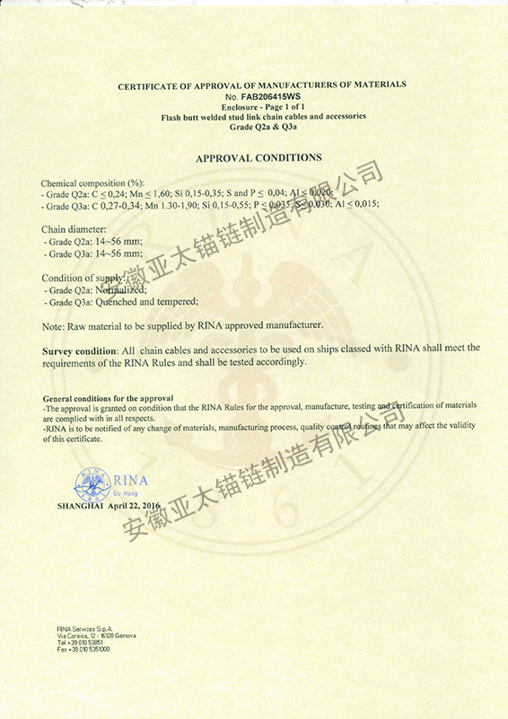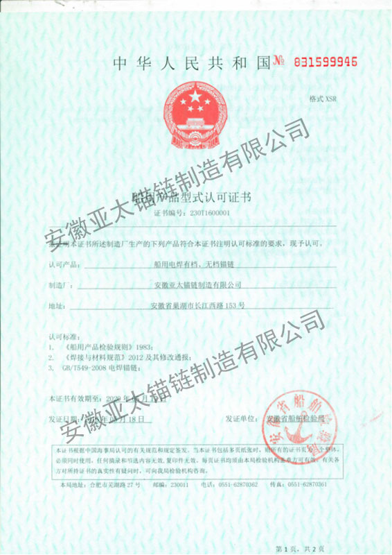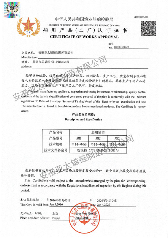 安徽亞太錨鏈制造有限公司是國家高新技術(shù)企業(yè),也是國家GB/T 549-2017《電焊錨鏈》標(biāo)準(zhǔn)的起草和制定單位之一。公司旗下設(shè)有錨鏈分廠、浮標(biāo)分廠、舾裝件分廠等多個(gè)分廠。公司專業(yè)從事φ12.5mm-φ107mm二、三級(jí)船用錨鏈、浮標(biāo)錨鏈、錨鏈附件,錨、船舶曬裝產(chǎn)品、航標(biāo)、系船浮、船型標(biāo)、多種規(guī)格海洋監(jiān)測浮標(biāo)及航標(biāo)燈等產(chǎn)品的生產(chǎn)、安裝和服務(wù)。目前公司的產(chǎn)品銷往全國各地船廠、碼頭、航標(biāo)處、航道局、海洋局,并已走上國際市場,如東南亞、中東、歐美等國家。